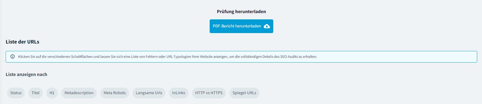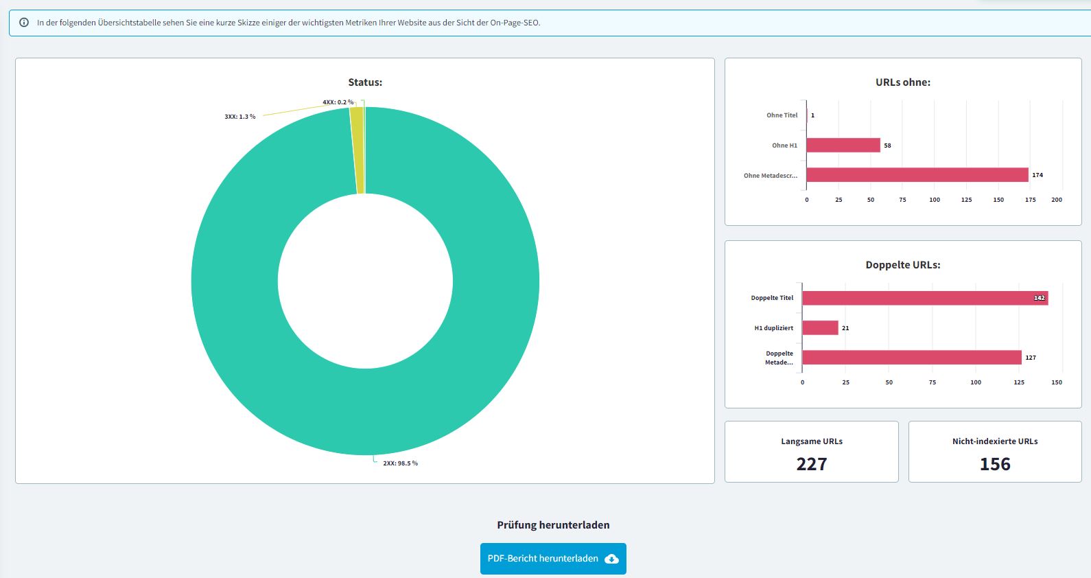 Hier können Sie den Status aller URLs Ihrer Website sehen.