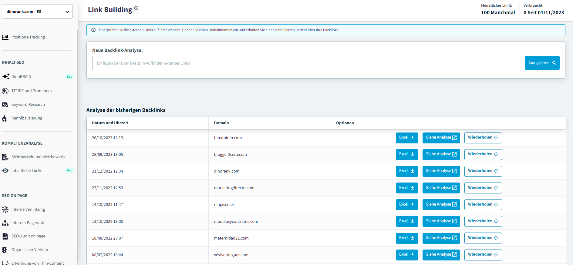Mit dem Backlink-Tool können Sie eine Domain in die Suchmaschine eingeben und sehen, wie viele Links sie hat und mit welcher Geschwindigkeit sie diese aufgebaut hat.