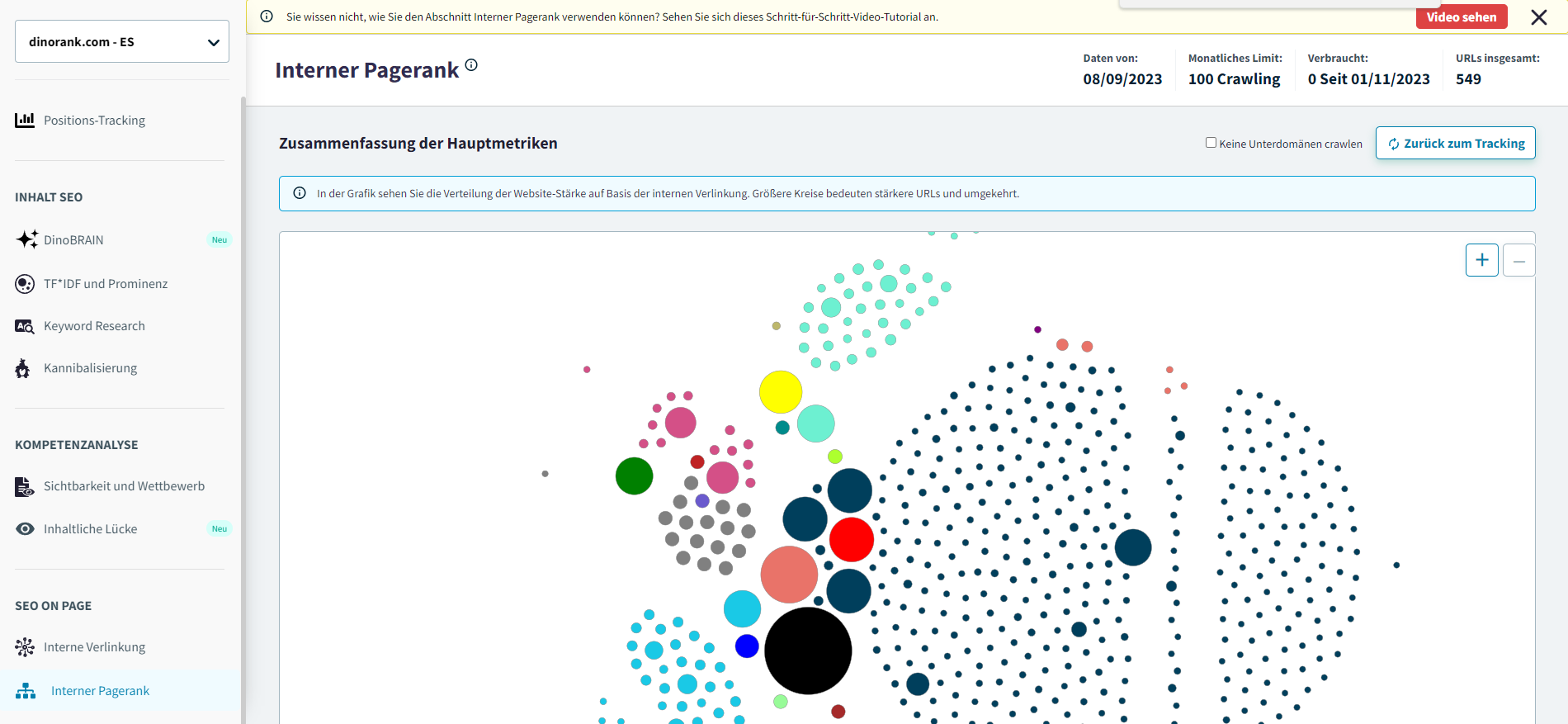 In diesem Kugeldiagramm können Sie auch sehen, ob die Verteilung der Stärke zwischen den URLs Ihrer Website ausgewogen ist oder nicht.