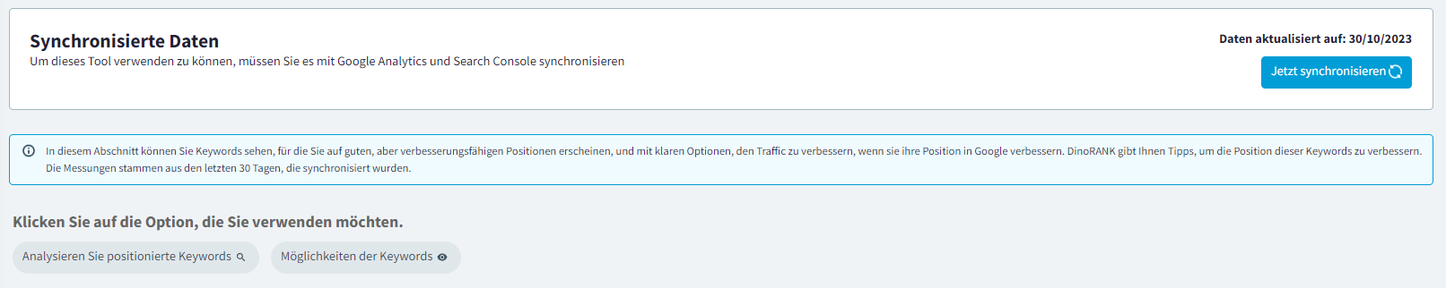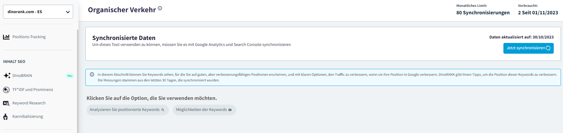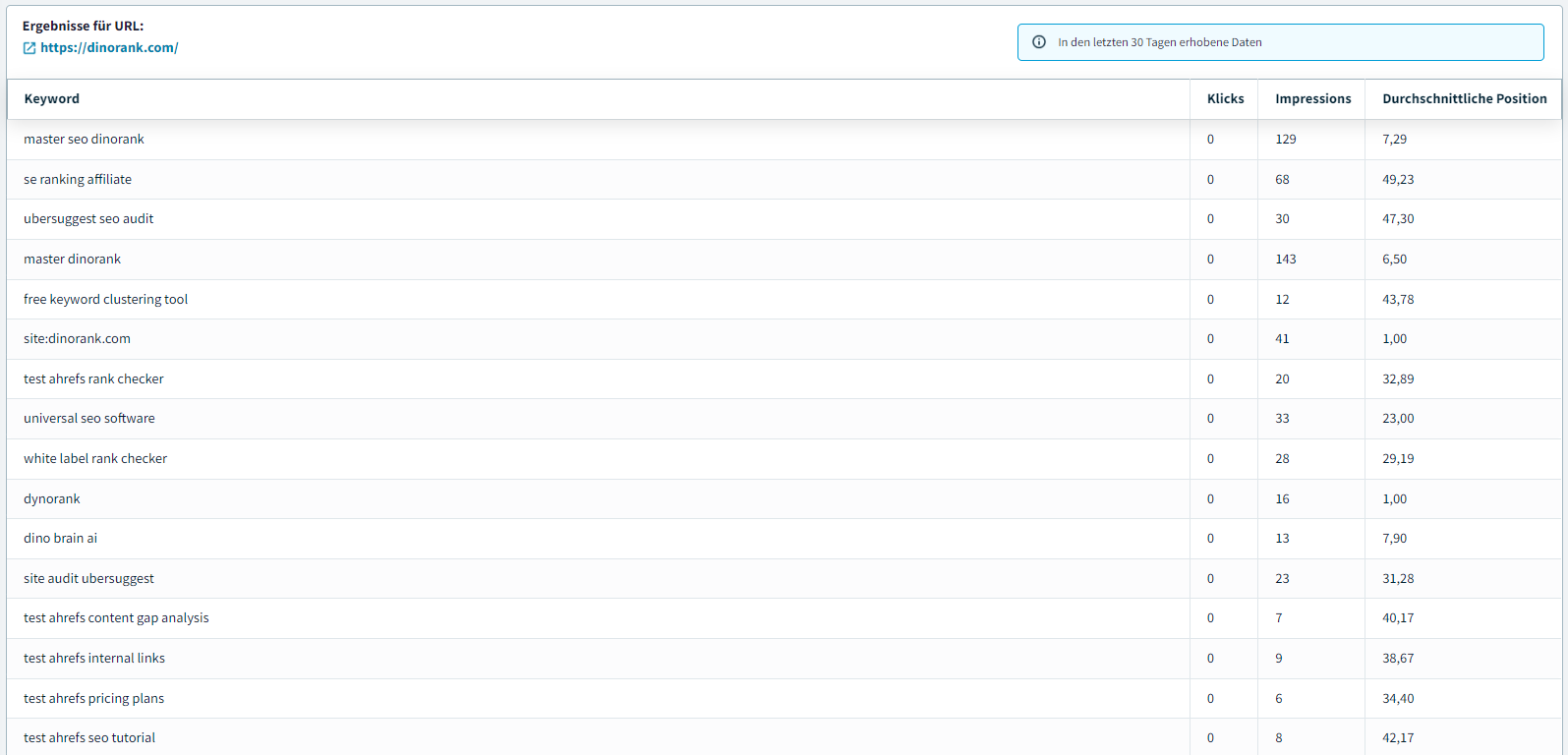Wenn Sie nicht an der Analyse bestimmter URLs interessiert sind, liefert Ihnen DinoRANK Keyword-Informationen für die gesamte Website.