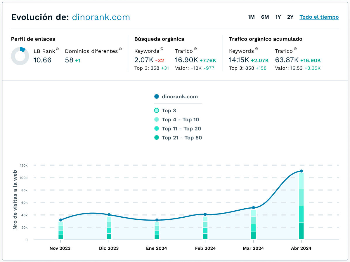 - Genera estrategias para mejorar el posicionamiento de tu dominio.
