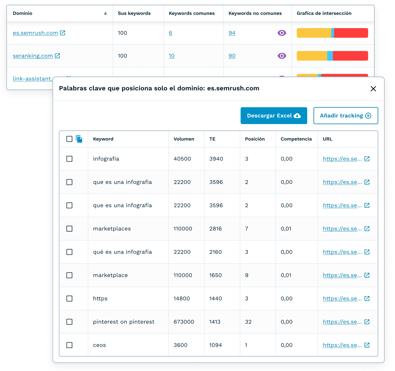 Monitoriza tus palabras clave y analiza el tráfico de tu competencia (y cómo lo está consiguiendo).