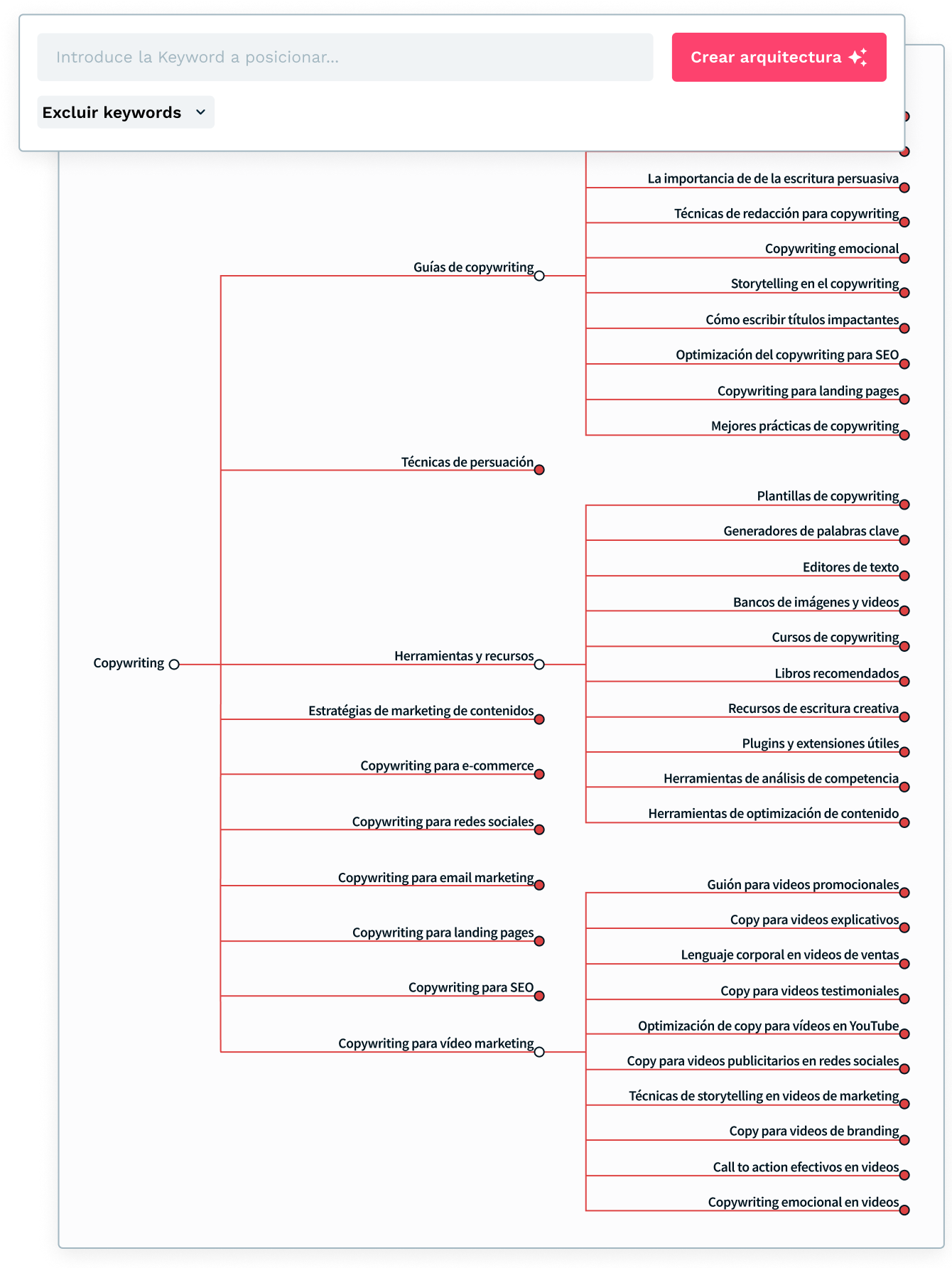 - Amplía tu listado de keywords con keywords similares, relacionadas y long tail.