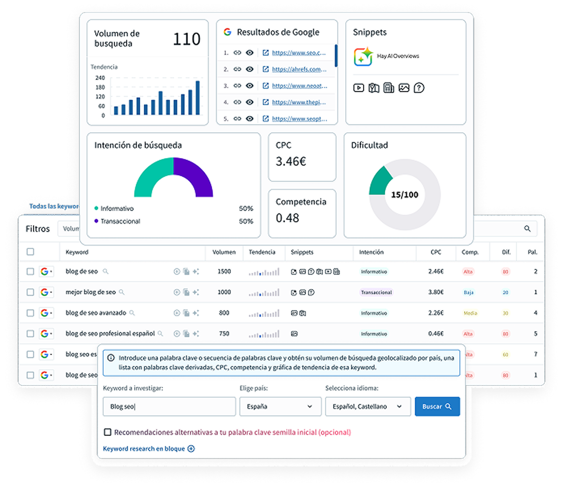 Encuentra palabras clave que tus clientes están buscando en Google y atrae tráfico cualificado hacia tu web.