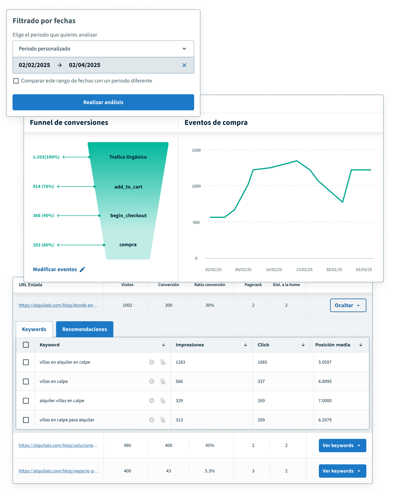 - Detecta, en cuestión de minutos, qué oportunidades puedes atacar para subir en los rankings.