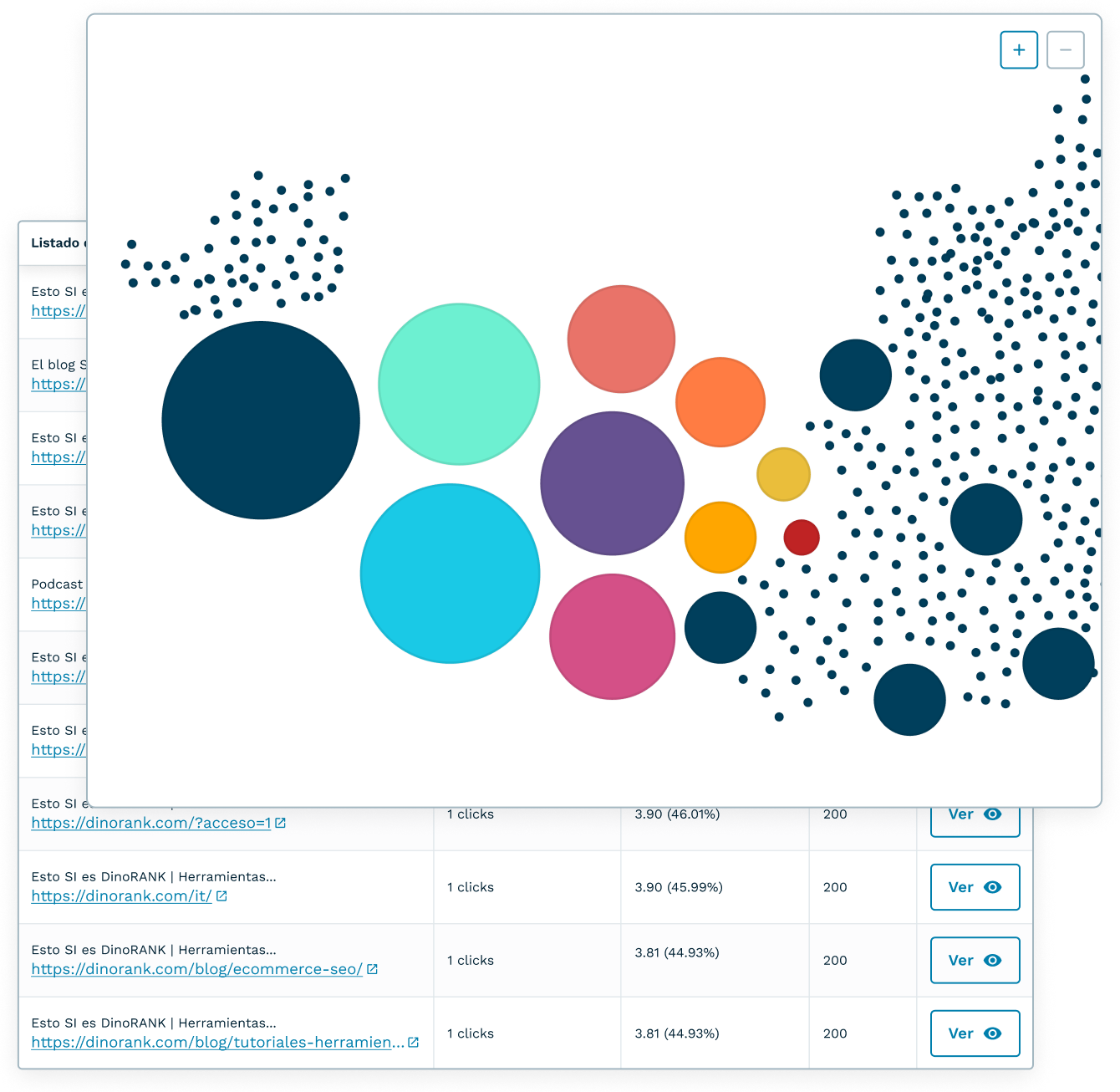 - Descubre de forma muy visual cómo se distribuye la fuerza entre las URLs de tu web.