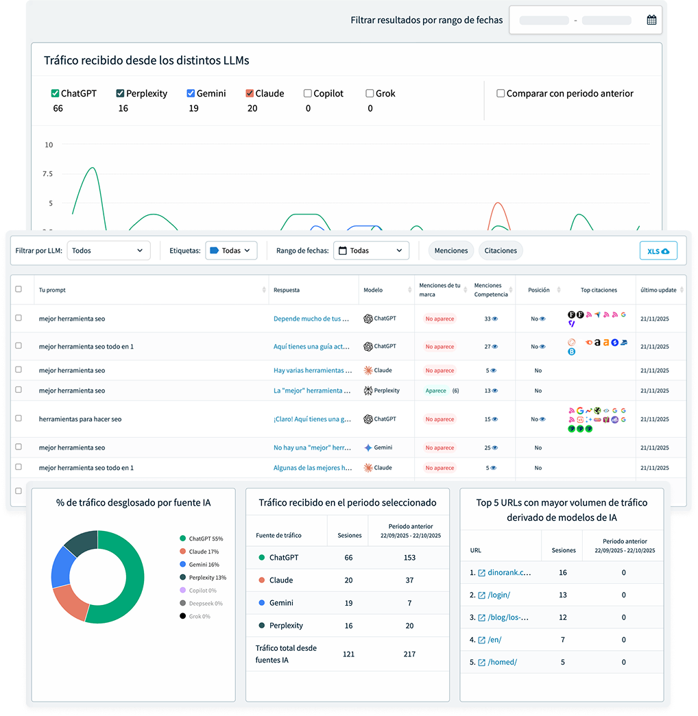 - Monitoriza el tráfico que te llega desde fuentes de IA.