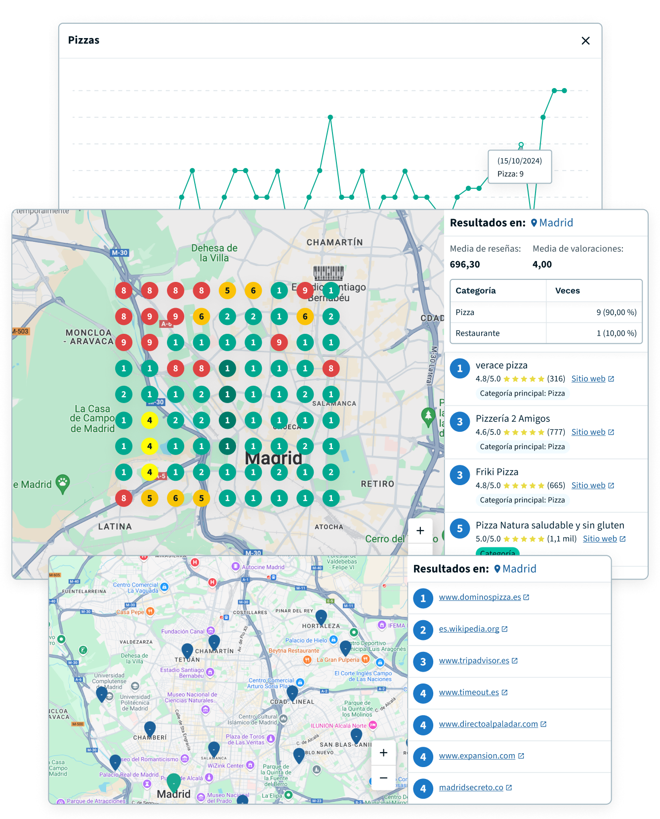 - Descubre cómo posicionan los negocios de tus clientes en el local pack frente a los de su competencia con nuestro GeoGrid.