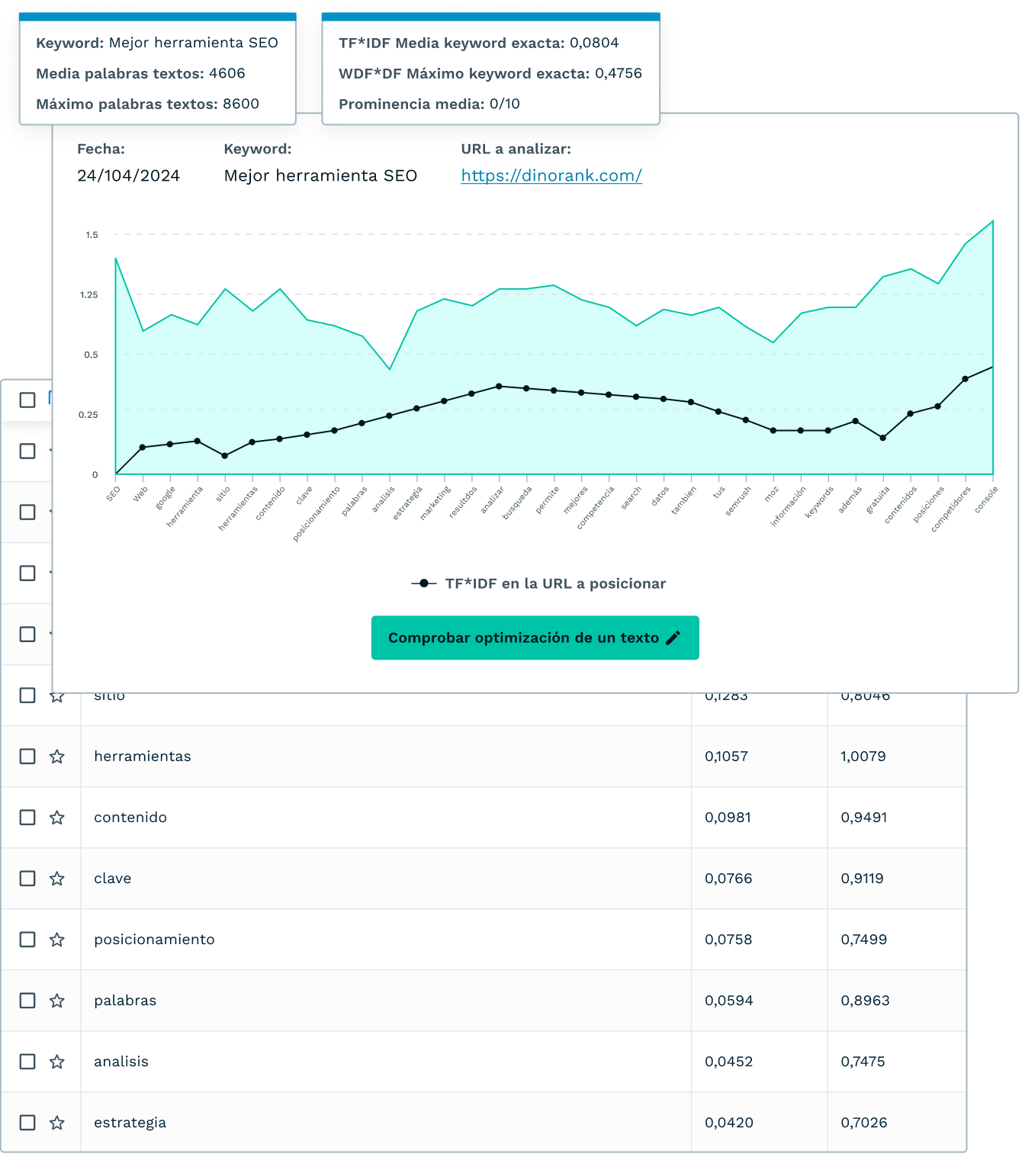 - Te dice qué keywords tienes que introducir en un contenido y cuántas veces las tienes que usar.