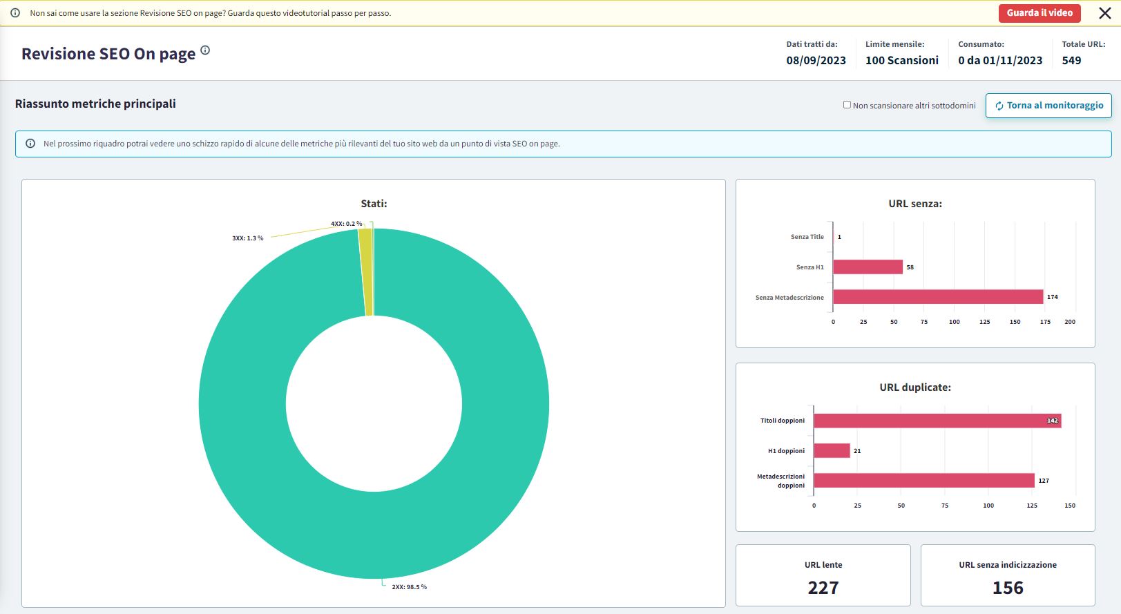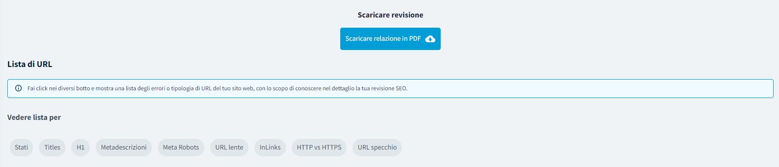 Qui puoi vedere lo stato di tutte le URL della tua web.