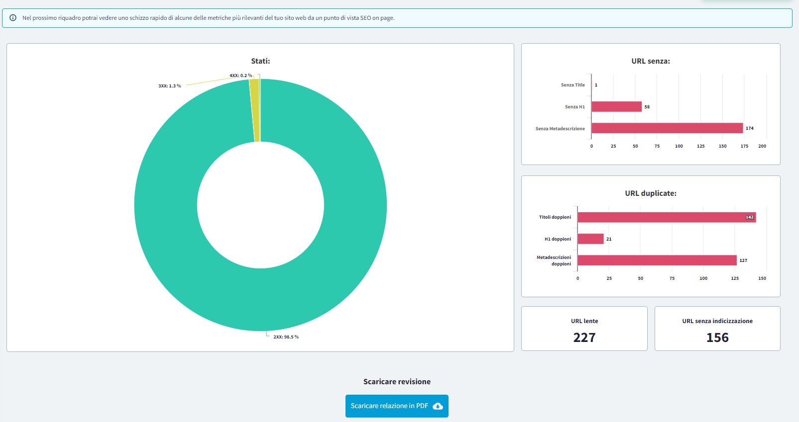Ti dice gli H1, titoli e metadescrizioni duplicate o vuote.
