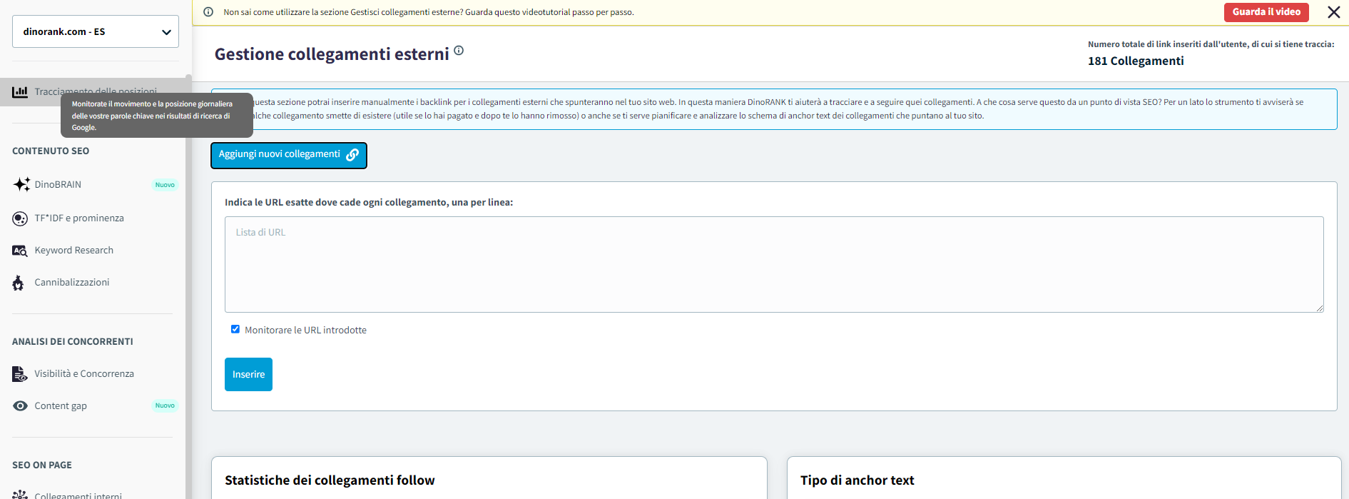 Fai un seguimento di tutti i collegamenti esterni con la funzione Gestione dei Collegamenti Esterni di DinoRANK