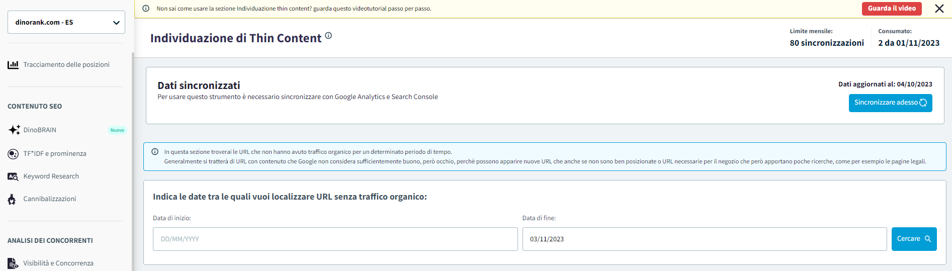 Come funziona la funzione Individuazione di Thin Content di DinoRANK