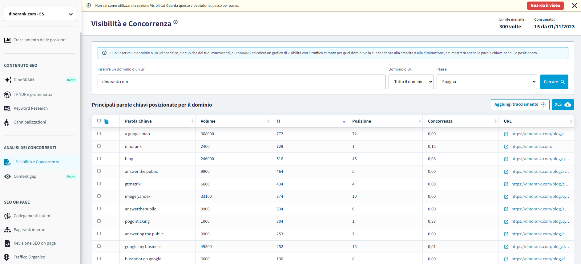DinoRANK vi fornirà il grafico di visibilità con la stima del traffico di quel dominio e la sua evoluzione.