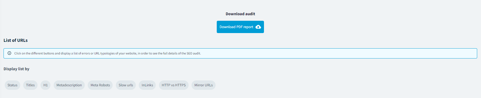 Después de revisar todos los detalles de la Auditoría SEO, DinoRANK te ofrece la opción de descargar un Informe profesional en PDF para que se lo puedas entregar a tu cliente con los problemas que tiene su web y las soluciones que planteas a cada uno de ellos.