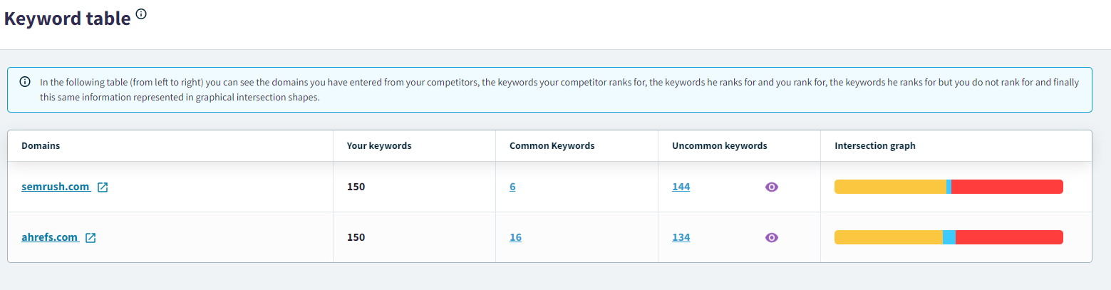 Lo bueno del content gap es que si analizas varios dominios, verás que todos ellos tienen algún contenido concreto que no tiene ningún otro competidor, por lo que puedes ir sumando keywords de oportunidad y trabajarlas todas en tu web siendo así la referencia.