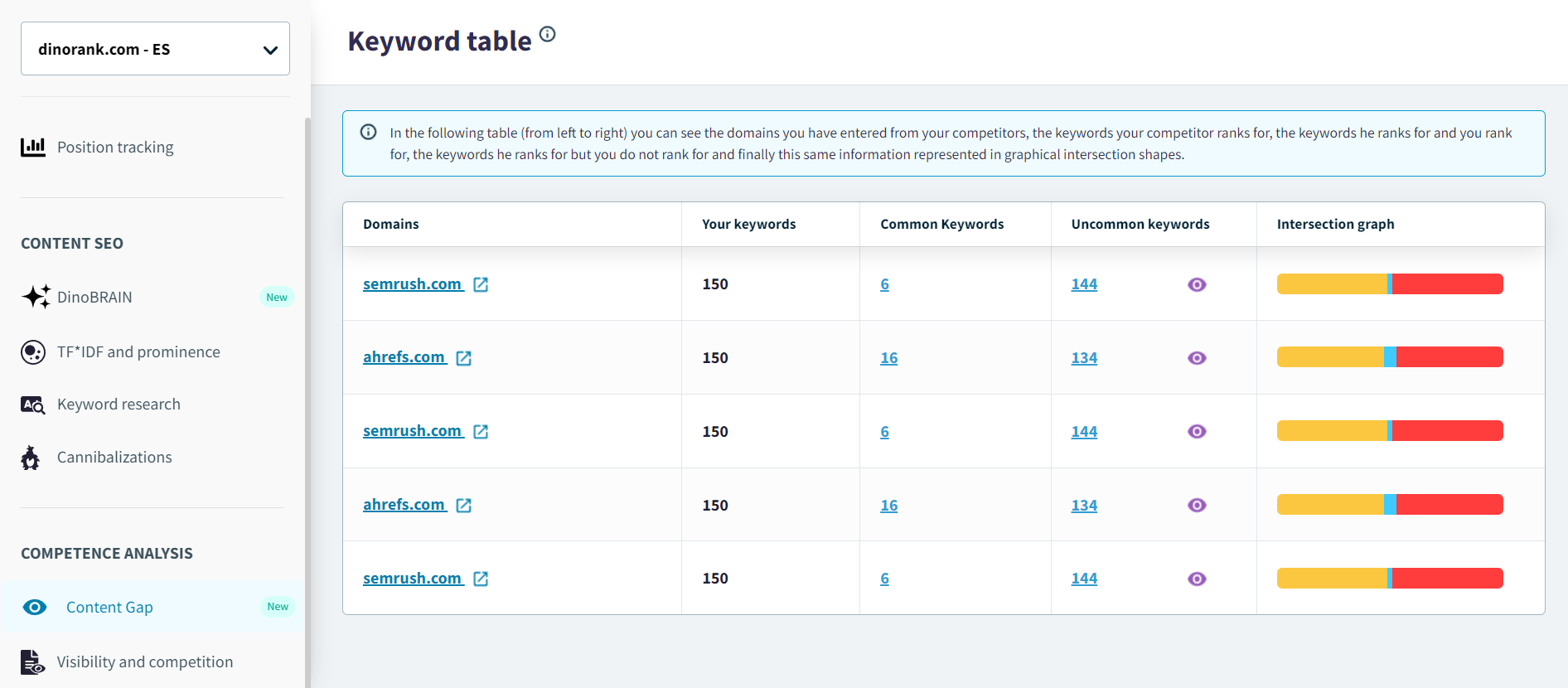Así funciona el Content Gap de DinoRANK