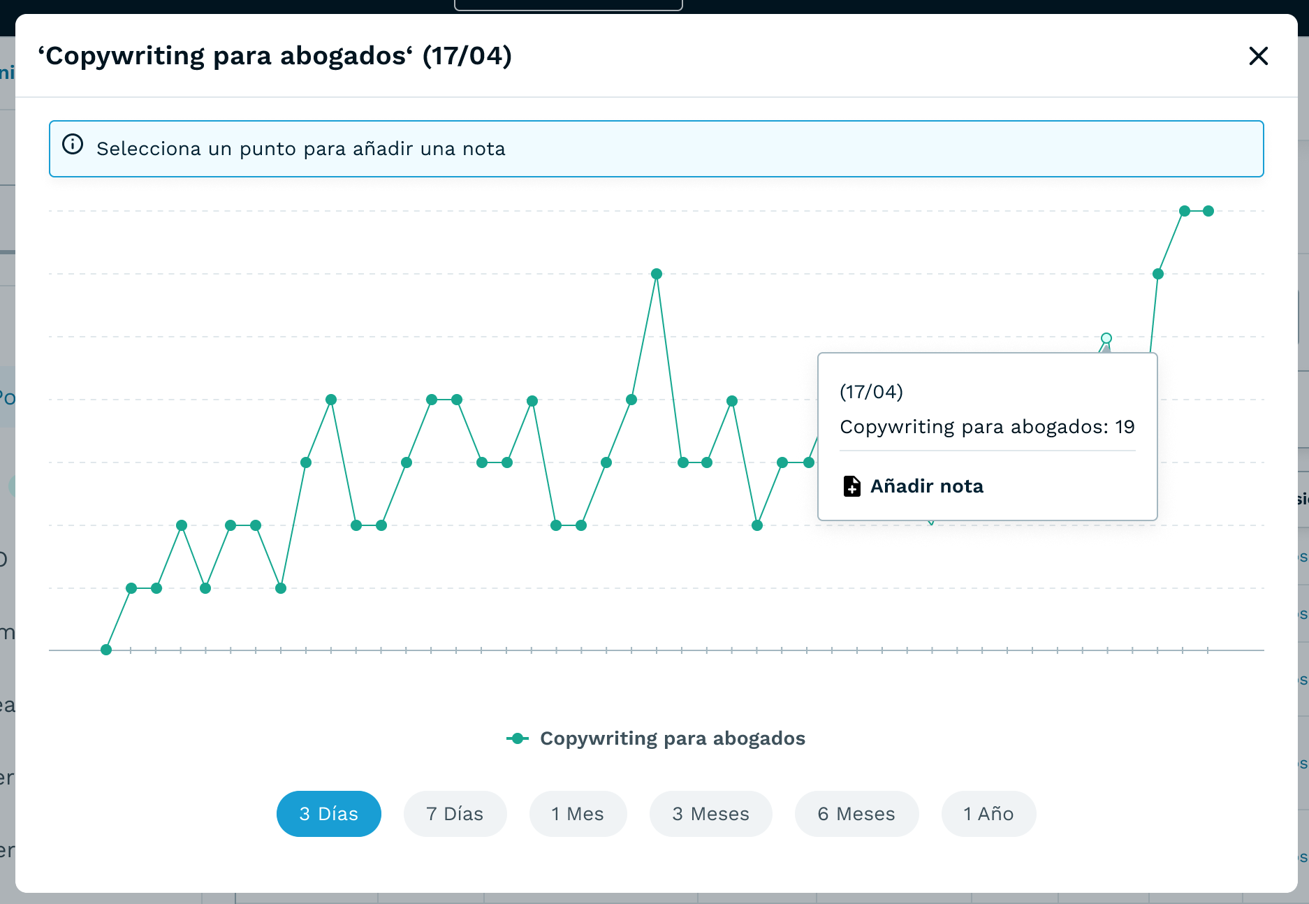 Esta es una gráfica del tracking de posiciones, que muestra la fluctuación de una keyword.